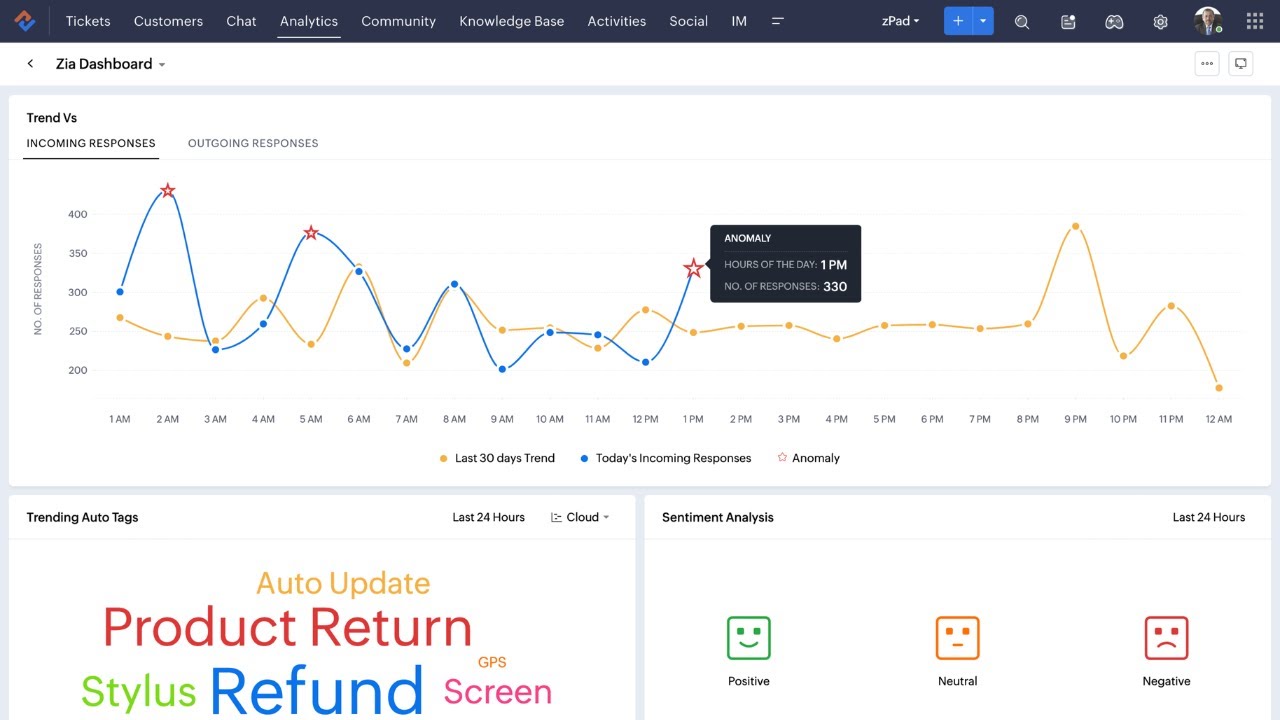 Next on the list is Zia. It is an AI support software that is context-aware; in other words, it can read and understand what your customers want from you. The more it works, the more intelligent it gets. It can answer common questions, provide recommendations, and even close/open tickets. You can also integrate it into a live chat for even more productivity.